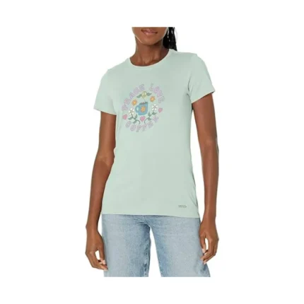 Life Is Good Women’s Peace Love Coffee Tee – Sage Green