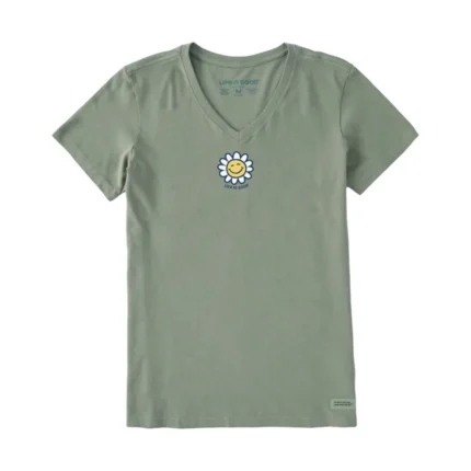 Life Is Good Women’s Smile Daisy Short Sleeve Crusher Vee – Moss Green