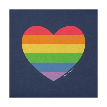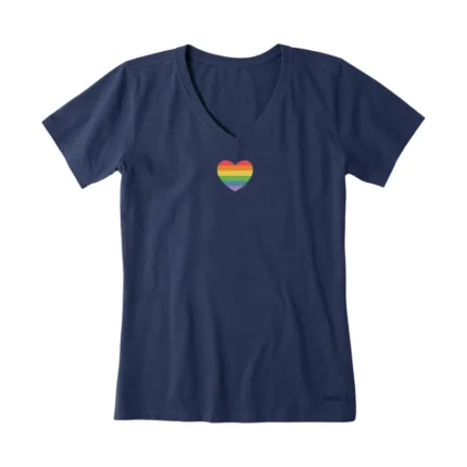 Life Is Good Women’s Rainbow Pride Heart Short Sleeve Vee – Darkest Blue