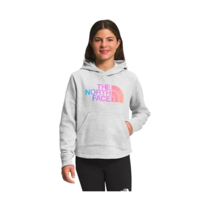 The North Face Kids’ Camp Fleece Pullover Hoodie – Light Grey Heather/Super Pink