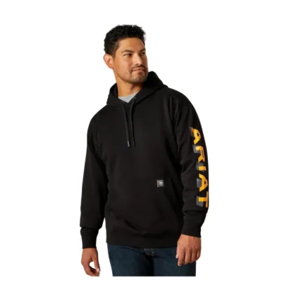 Ariat Men’s Lightweight Logo Hoodie – Black Rebar Orange