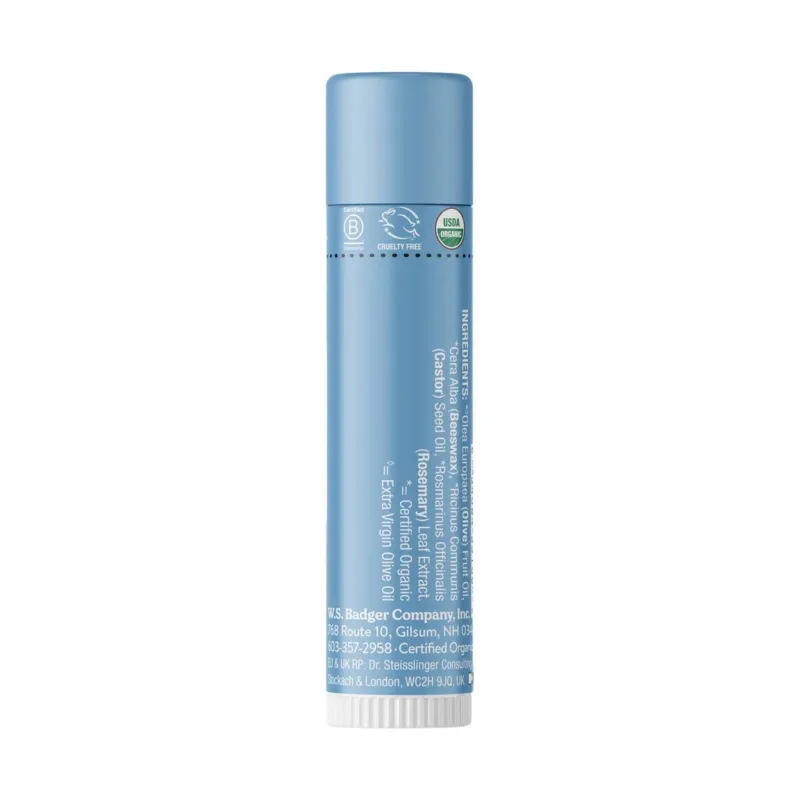 - Organic Badger Lip Balm: extra virgin olive oil, beeswax, and rosemary moisturize and protect lips.