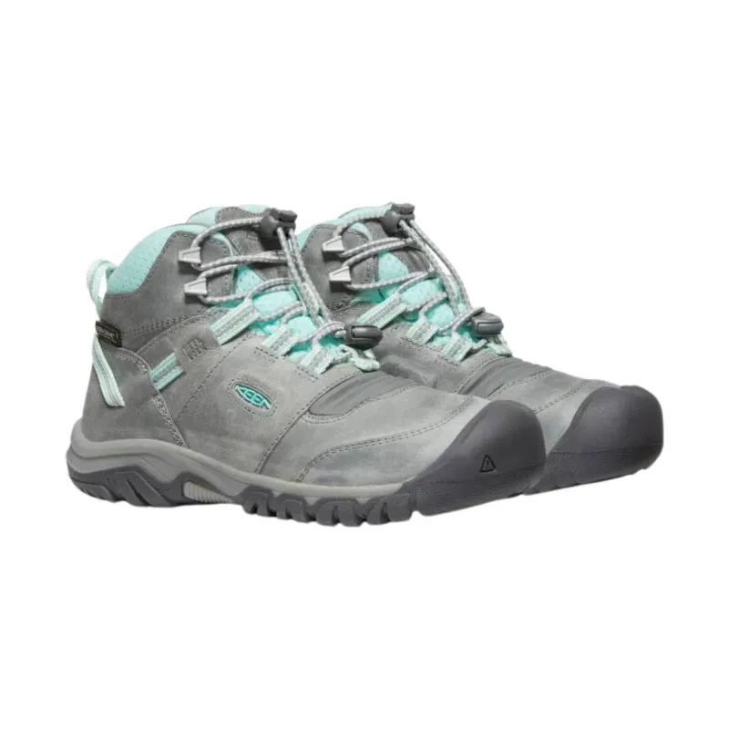 KEEN Big Kids’ Ridge Flex Waterproof Mid Boot- Grey/Blue Tint