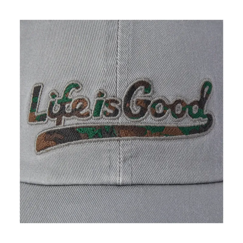 Stay cool and casual with the Life Is Good Camo Tailwhip Chill Cap in Slate Grey.