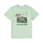 Unleash your playful side with our Life Is Good Men’s Dinosaur Life Was Good Crusher LITE Tee in Sage Green.