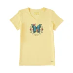 Embrace sunny days with the Life Is Good Women’s Butterfly Take It Slow Short Sleeve Vee in Sandy Yellow.