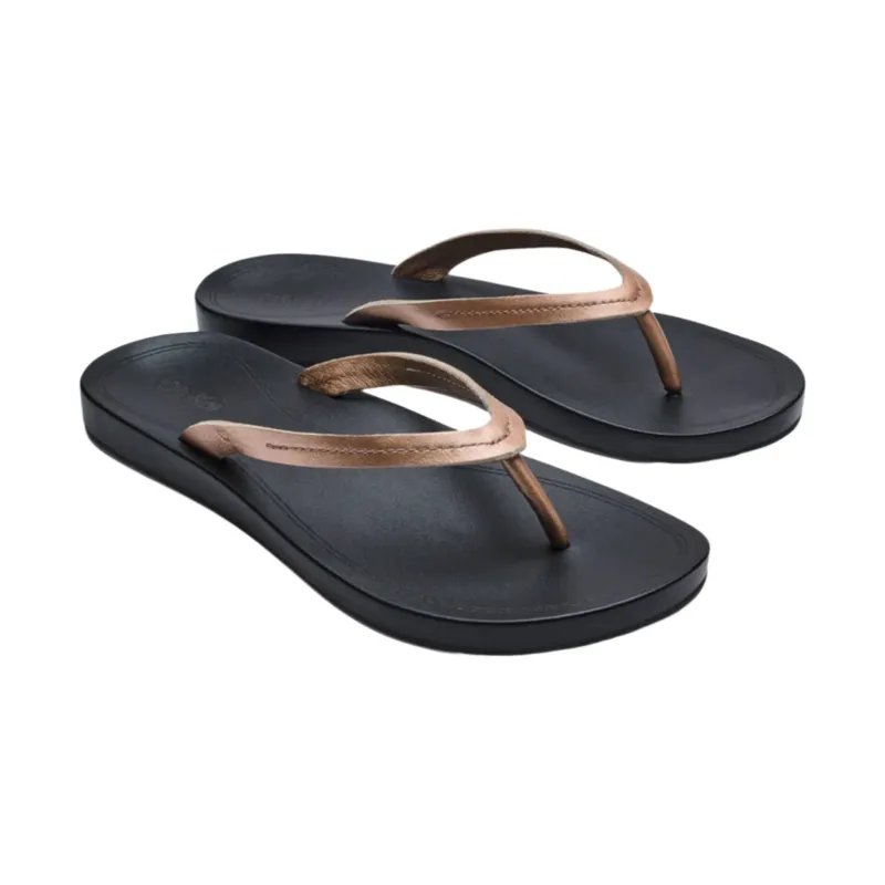 OluKai Women’s Lalahi Leather Beach Sandals – Copper/Lava Rock