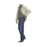 - 5-pocket styling with back-pockets detail, a zip fly, and button closure