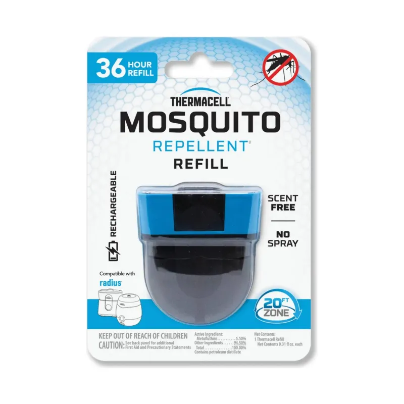 - Rechargeable Refills create a 20-foot zone of protection against mosquitoes – our largest zone yet. This cartridge is compatible with all Thermacell rechargeable repellers.