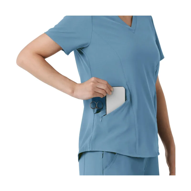 Wink Women’s Renew V Neck Scrub Top in Pacific Blue offers comfort and style for healthcare professionals!